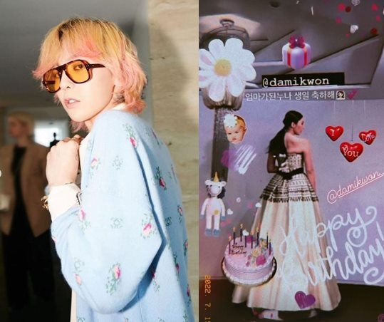 지드래곤은 15일 자신의 인스타그램 스토리에 “엄마가 된 누나 생일 축하해”라는 글과 함께 사진을 게재했다.