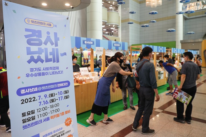 이번 행사는 경기도 사회적경제기업의 판로 개척을 지원하는 판매 행사로, 매주 16개 기업이 참여해 2주간 총 32개 기업이 참여했다. 행사명인 ‘경사났네’는 ‘경기도 사회적경제가 나타났네’의 줄임말이다.