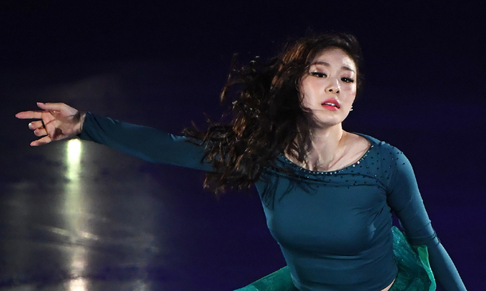 사진 설명 : 김연아가 '올댓스케이트 2019 아이스쇼' 공개리허설에서 몸을 풀고 있다.