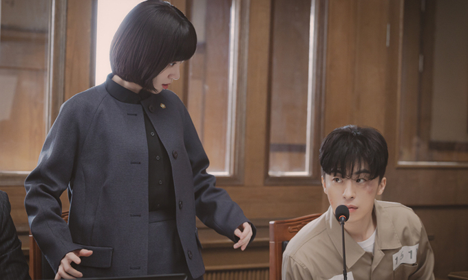 ENA채널 ‘이상한 변호사 우영우’ 측은 27일, ‘어린이 해방군 총사령관’ 방구뽕(구교환)의 변호를 맡은 우영우(박은빈)와 권민우(주종혁)의 모습을 공개했다.
