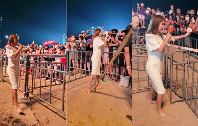 송가인은 ‘한 많은 대동강’부터 ‘오늘같이 좋은 날‘, ‘밤차에서’ 그리고 트로트 메들리를 열창했다. 트로트 메들리를 선보이던 도중 송가인은 구두를 벗고 맨발로 백사장을 가로질러 팬들 곁으로 다가가 노래하며 단독 콘서트를 방불하게 하는 열정의 무대를 선보였다.