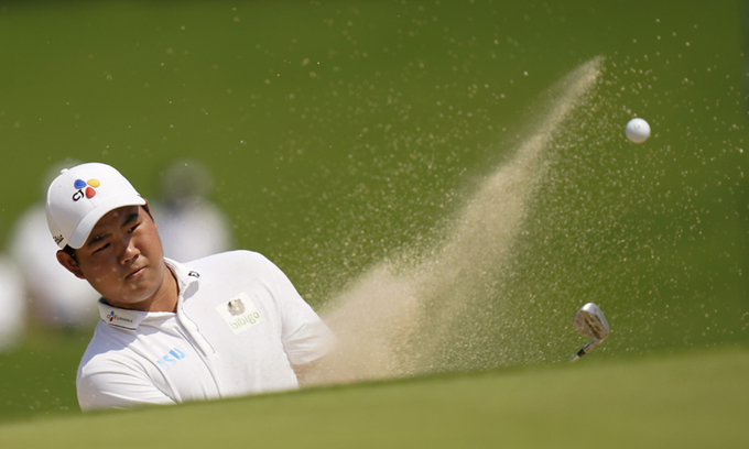 사진=AP/뉴시스 (김주형이 필드에서 라운딩하고 있다.)