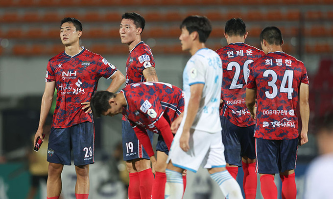 사진 설명 : 김천 선수단이 포항전 패배로 아쉬워하고 있다.