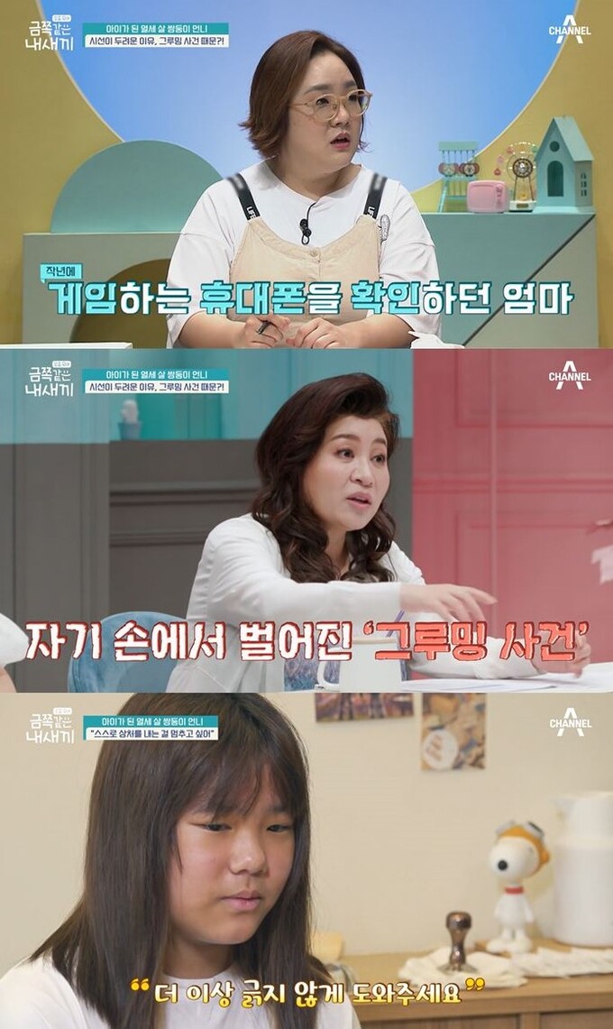 이날 금쪽이 엄마는 지난해 6월 딸의 휴대폰을 통해 그루밍 피해 사실을 발견했다고 밝혔다. 그는 “경찰에 신고하고 찾아갔는데 아무것도 할 수가 없더라. 대화 내용도 지운 상태고 (가해자가) 탈퇴해버리면 그만이다. 실질적으로 처벌할 수 있는 방법은 없다더라”고 털어놨다.