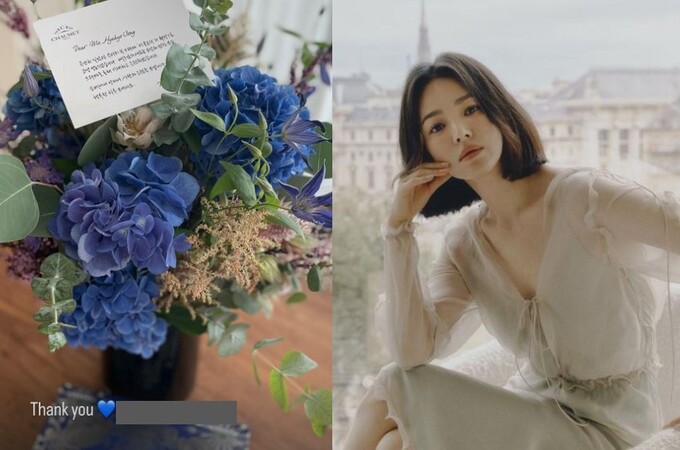 이에 송혜교는 하트 이모티콘을 덧붙이며 고마움을 전했다. 앞서 송혜교는 개인 SNS를 몇 차례 꽃 선물을 인증한 바 있다. 뛰어난 미모는 물론 훌륭한 인품을 엿보게 한다.