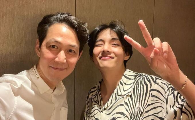 사진에는 다정하게 셀카를 남긴 뷔와 이정재의 모습이 담겼다. 두 사람은 카메라를 바라보며 훈훈한 미소를 지었다. 특히 뷔는 윙크와 브이 프즈로 여유로운 분위기를 자아내 눈길을 끈다.