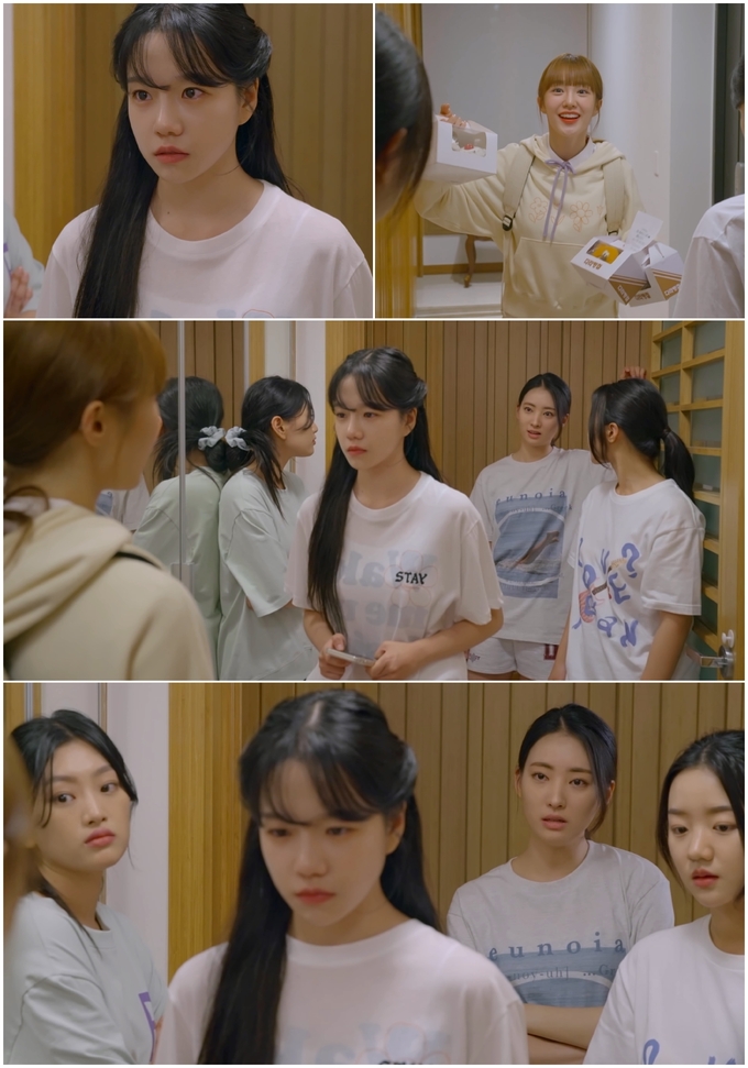 다라는 로시와 ICE 멤버들을 향해 활짝 웃으며 ‘다라빵집’이라고 쓰인 쿠키와 케이크를 들어 보이고 있지만, 분위기는 심상치 않다. 로시를 따돌리고 있는 채나가 비웃음을 가득 띠고 다라에게 뭔가 말하는 듯한 가운데, 얼굴이 창백해진 로시마저 무표정하게 다라를 외면하고 있어 긴장감을 자아낸다.