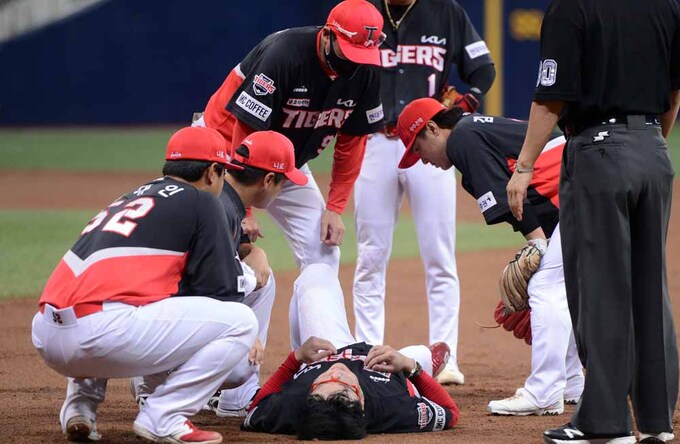 [SW포토]양현종, 부상은 아니길! 기사입력 2022-08-24 19:11:37 기사수정 2022-08-24 19:11:36 글씨 크기 선택 가장 작은 크기 글자 한 단계 작은 크기 글자 기본 크기 글자 한 단계 큰 크기 글자 가장 큰 크기 글자 프로야구 KIA 투수 양현종이 24일 고척스카이돔구장에서 열린 키움과의 경기 2회말 1사 후 상대 김혜성의 내야땅볼때 동료 1루수 황대인과 충돌후 넘어지고 있다. 고척=김두홍 기자 kimdh@sportsworldi.com 2022.08.24. [ⓒ 세계비즈앤스포츠월드 & sportsworldi.com, 무단전재 및 재배포 금지] 메뉴보기 페이스북 공유 트위터 공유 url 공유 더보기