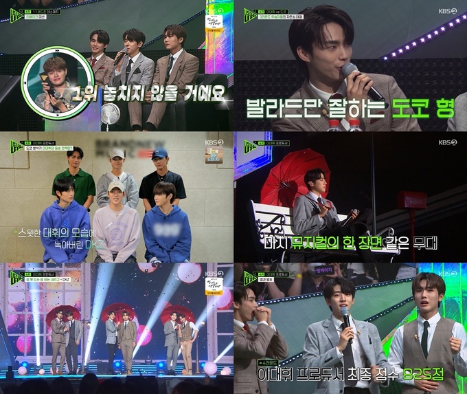귀여운 외모 속 반전되는 입담으로 모두를 놀라게 만든 DKZ는 이대휘의 프로듀싱과 함께 가수 김건모의 ‘잠 못 드는 밤 비는 내리고’ 리메이크 무대를 준비, 6인 6색 멋짐을 표현한 슈트와 우산을 활용한 퍼포먼스로 시선을 사로잡았다.