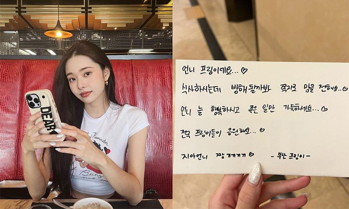 이어 프리지아는 한 팬으로부터 받은 손편지를 공개했다. 편지에는 ‘언니 프링이에요…. 식사하시는데 방해될까 봐 쪽지로 맘을 전해요. 언니 늘 행복하시고 좋은 일만 가득하세요. 전국 프링이들이 응원해요’라고 적혀있다. 프리지아는 이를 카메라에 담으며 고마움을 전했다.
