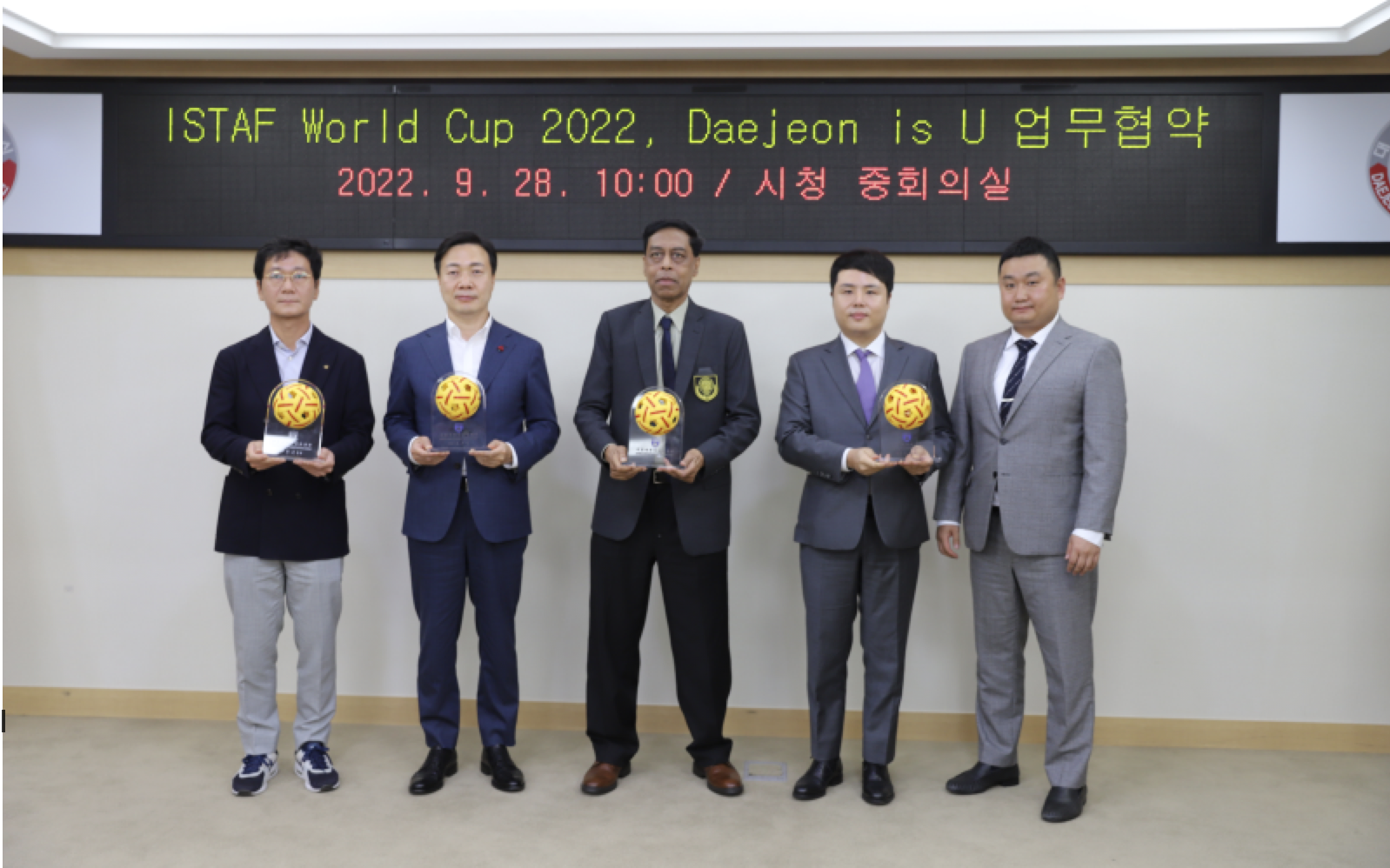 지난 28일 대전광역시청에서 세계세팍타크로연맹, 대전광역시, 대전광역시체육회, 대한세팍타크로협회의 세계 세팍타크로 월드컵의 성공적인 개최를 위한(ISTAF World cup 2022, Daejeon is U) MOU 업무 협약식이 열렸다.