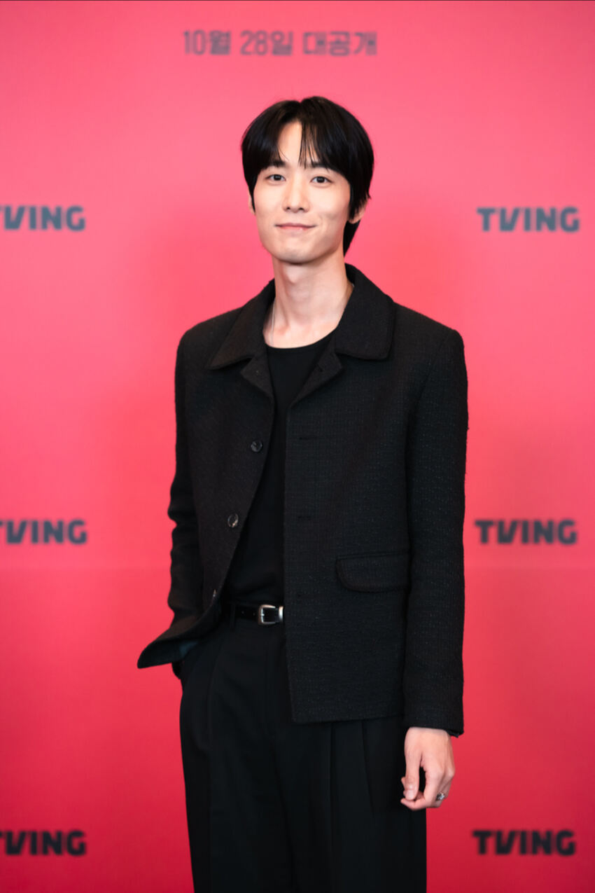 배우 장률이 17일 티빙 오리지널 시리즈 ‘몸값‘ 온라인 제작발표회에 참석 포즈를 취하고 있다.