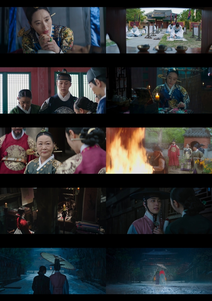 다시 마주한 중전과 대비는 속내를 숨김없이 드러내며 서로를 향해 날을 세웠다. 계성대군의 흉측함을 모두 앞에 공개할 거라는 대비의 냉혈한 면모는 오금이 저릴 정도로 매서웠고 혈허궐의 모든 가능성을 불태워버린 대비에게 던지는 화령의 뼈 있는 응수는 묵직했다.