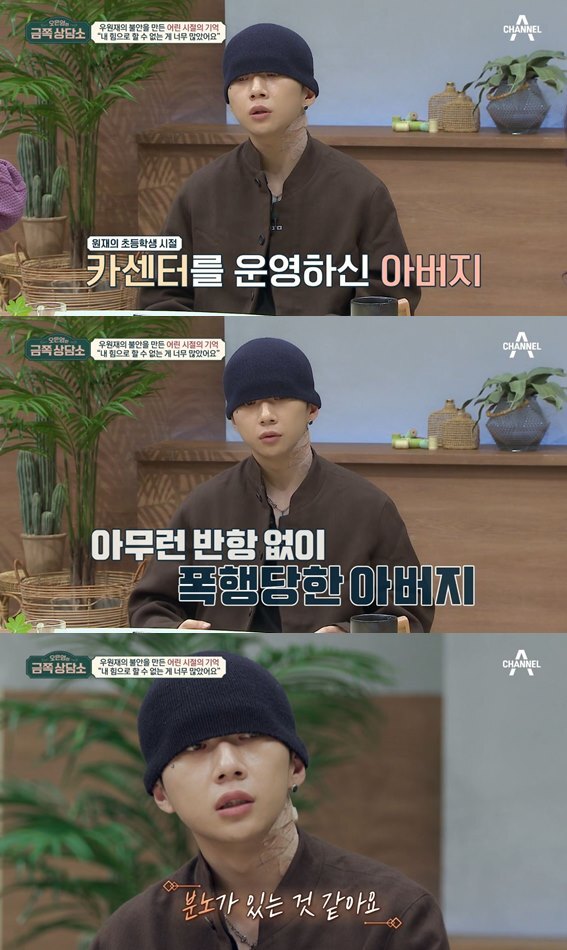 래퍼 우원재가 어린 시절 아버지가 폭행당하는 모습을 목격한 적이 있다고 밝혔다.