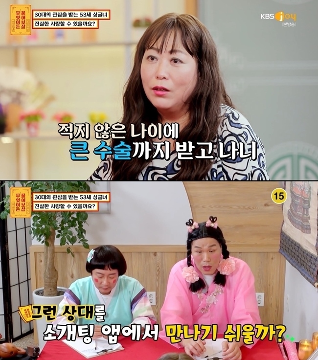 7일 방송한 KBS Joy 예능프로그램 ‘무엇이든 물어보살’에서는 53세 출연자 정애영씨의 근황을 다시 언급했다.