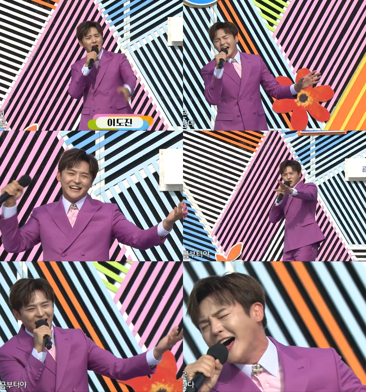 이날 방송에서 퍼플계열의 깔끔한 재킷차림으로 무대에 오른 이도진은 최근 발표한 신곡 ‘청춘은 바로 지금’을 선보였다.