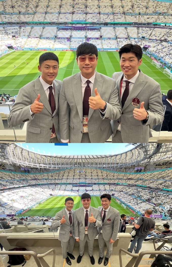 공개된 사진 속에서 박지성은 월드컵 현지 경기장에서 캐스터 배성재, 수원FC 이승우와 나란히 포즈를 취하며 활기 있는 모습을 더했다.