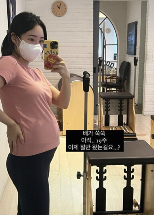 28일 최희는 본인의 인스타그램 스토리를 통해 거울을 보고 찍은 D라인 셀카를 게재했다. 최희는 사진 위에 “배가 쑥쑥. 아직 19주. 이제 절반 왔는걸요?”라는 멘트를 붙였다.
