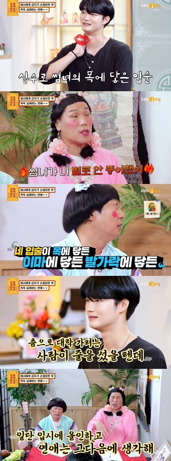 댄스로 입시 준비중이라는 사연자는 ”고등학교 2학년 때 썸을 탄 여자아이가 있는데 그에게 손절 당한 이후로 다음부터는 연애가 망한다“고 고민을 전했다. 그는 썸녀에 대해 ”재미있게 지내다가 제가 먼저 고백을 했다. 그런데 그 친구는 지금 연애할 마음이 없다며 생각 후 사귀거나 손절을 하겠다고 했다. 생각할 시간이 필요하다고 해서 (헤어질 때) 포옹을 했는데 제 입술이 그 친구의 목에 닿았다. 집에 가서 전화하니 그 친구는 내 목에 입술이 닿은 게 용납이 안 된다. 그만하자고 말했다”고 말했다.