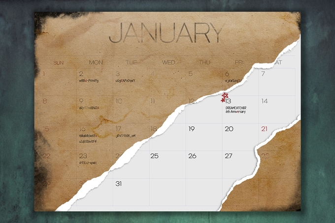 공개된 미스터리 코드는 2023년 1월의 달력을 모티브로 완성됐다. 2일을 비롯해 3일, 6일, 9일 등 다양한 날짜에 알파벳과 숫자의 조합이 담겨있는가 하면, 오는 13일에는 ‘DREAMCATCHER 6th Anniversary’라는 문구로 데뷔 6주년을 명시하며 궁금증을 자극하고 있다.