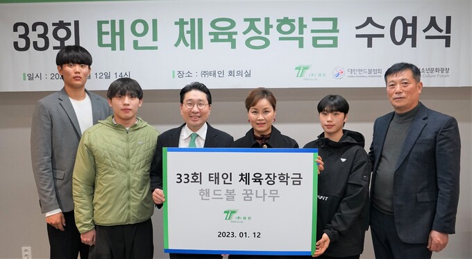 1990년부터 시작돼 33회를 맞이한 태인체육장학금은 핸드볼 분야를 포함해 산악, 양궁, 탁구, 역도, 육상, 하키, 배드민턴을 비롯한 다양한 체육 종목 선수들에게 매년 장학금을 지원하고 있다. 핸드볼 분야에는 현재까지 28명에게 2560만원을 지원했다. 중소기업이 주체가 돼 체육 꿈나무 육성만을 목적으로 하는 장학 사업은 사례를 찾기 힘들다.