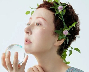 서정희는 머리에 화관을 쓰고 화려한 메이크업을 한 채 미소를 짓고 있다.