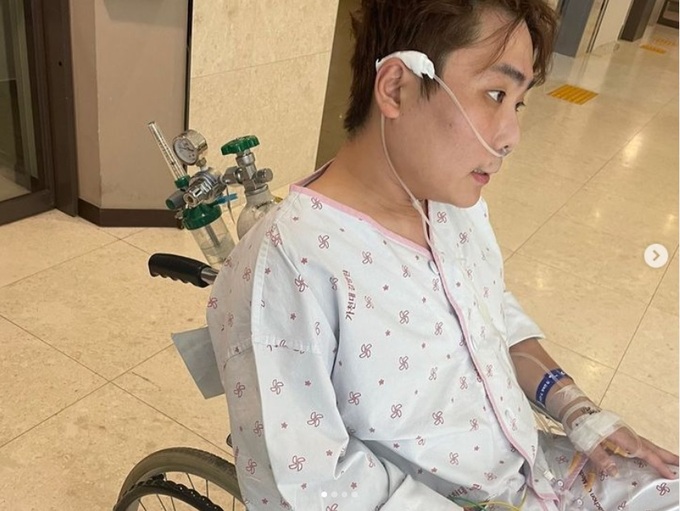 사진 속 송필근은 코에 호스를 붙이고 산소호흡기를 단 휠체어를 탄 모습이다. 평소보다 살이 많이 빠지고 안색이 어두워보이는 등 안타까움을 자아냈다.