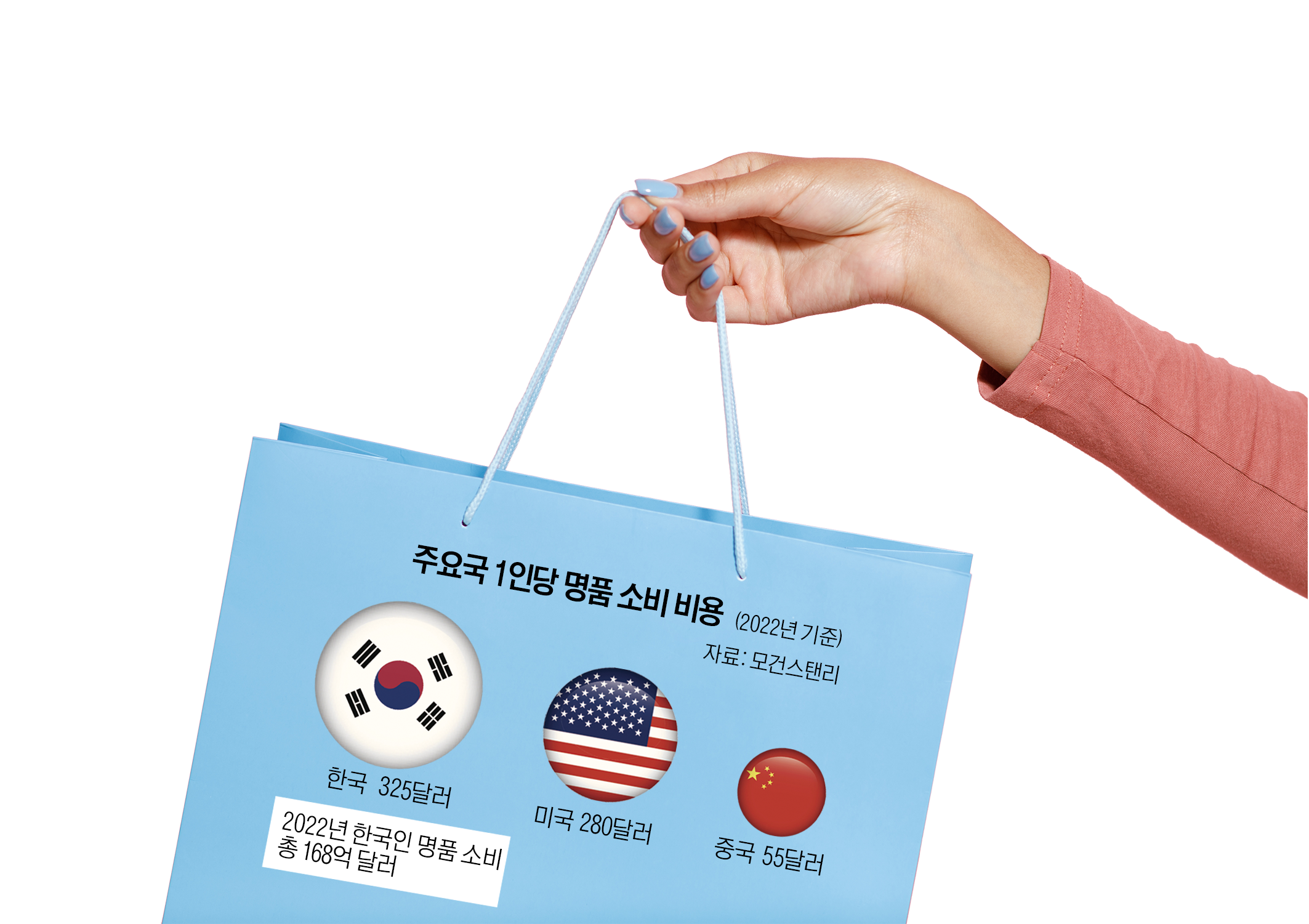 6일 모건스탠리에 따르면 지난해 한국인의 명품 소비는 전년보다 24% 증가한 168억달러(약 20조9000억원)로 추산된다. 이를 1인당 금액으로 환산하면 325달러. 미국(280달러)은 물론 ‘명품소비 강국’으로 꼽히던 중국(55달러)까지 가뿐하게 앞질렀다.