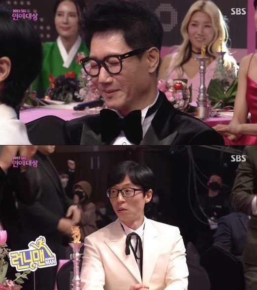 지석진은 유재석에게 귓속말로 뭐라고 했을까. 지석진은 “재석이가 상 받아서 거친 욕을 하기도 했다. ‘축하한다 강아지야’ 정도 했다”며 “진심으로 축하하긴 하는데 찐친이라 눈물 흘리며 축하해주고 싶진 않았다. 많은 팬 분들이 분노해주셔서 감사했다”고 밝혀 웃음을 안겼다.