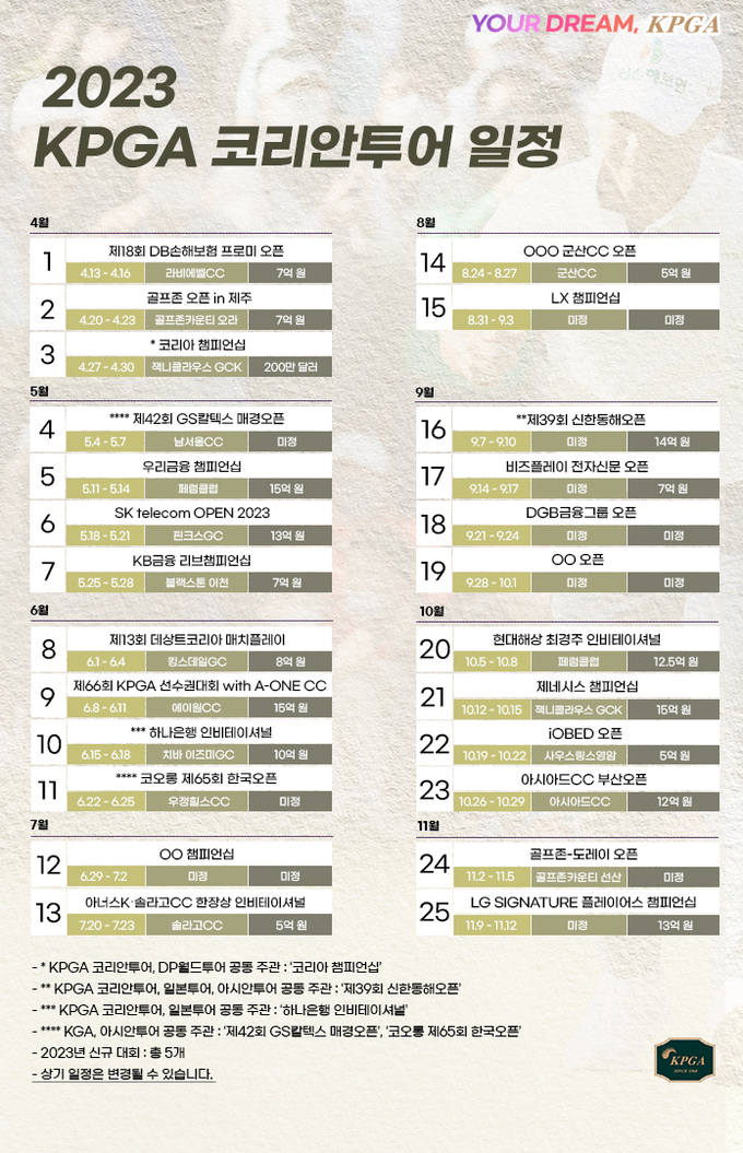 2023시즌 한국프로골프(KPGA) 코리안투어 일정이 발표됐다.