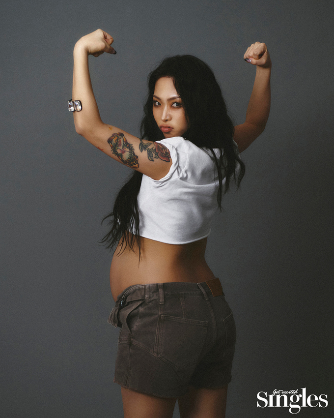 이번 촬영에서 허니제이의 룩은 매우 섹시하고 카리스마가 넘쳤다. 만삭의 몸을 당당하게 보여줌과 동시에, D라인을 노출하는 대담한 룩이 주를 이루었다. 허니제이의 소화력 역시 완벽했다. 무대 위에서의 카리스마를 그대로 보여주며 완벽한 모습을 보여줬다.