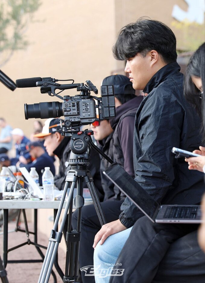 사진=한화이글스 제공/ 한화 이글스TV 제작진이 스프링캠프 현장 곳곳에서 밀착 촬영하고 있다.