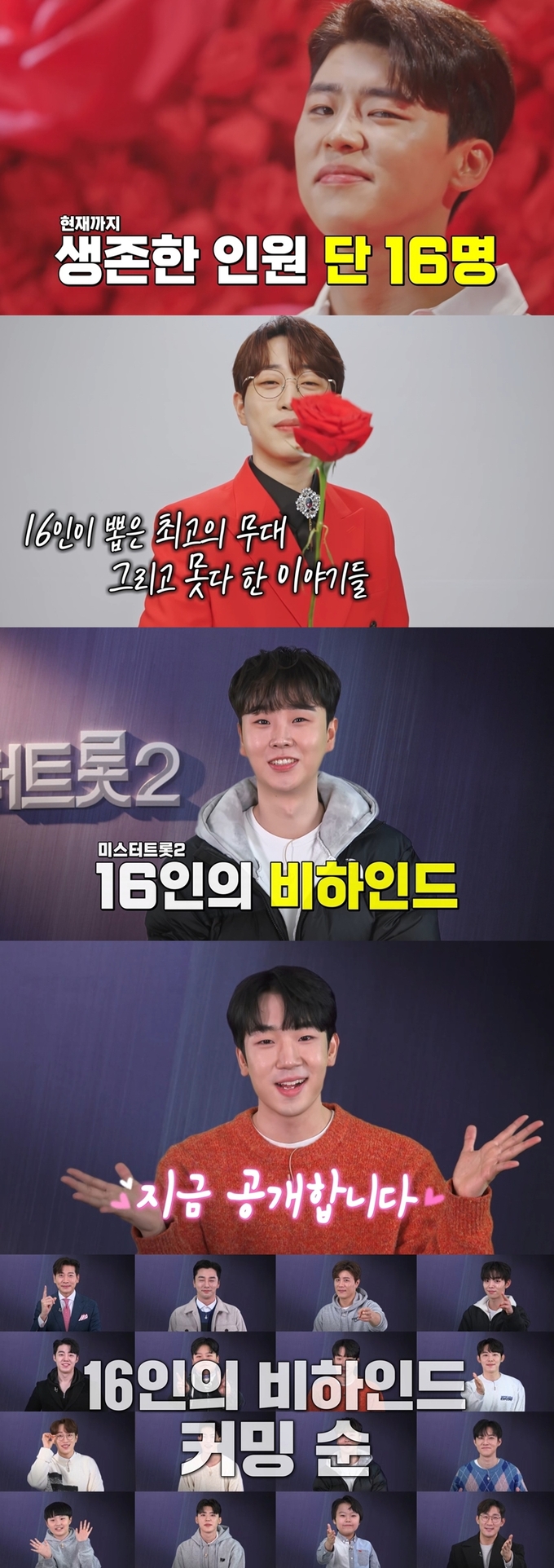 대한민국 원조 트롯 오디션 ‘미스터트롯2-새로운 전설의 시작’이 오늘(28일) 밤 10시, 치열한 경쟁 끝에 TOP16 자리를 차지한 ‘유죄인간’ 16인의 ‘미스터트롯2 TOP16 스페셜’을 선보인다.