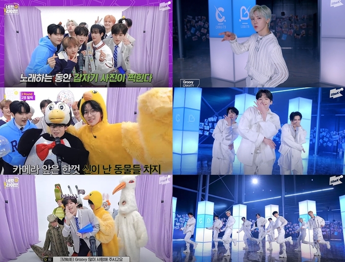 네컷 라이브에서 장난기 넘치는 모습으로 웃음을 선사했던 크래비티는 'Groovy' 스페셜 클립 영상에서 180도 달라진 반전 매력으로 이목을 집중시켰다. 크래비티는 스타일리시한 올 화이트 스타일링과 함께 완벽한 군무를 선보였다.