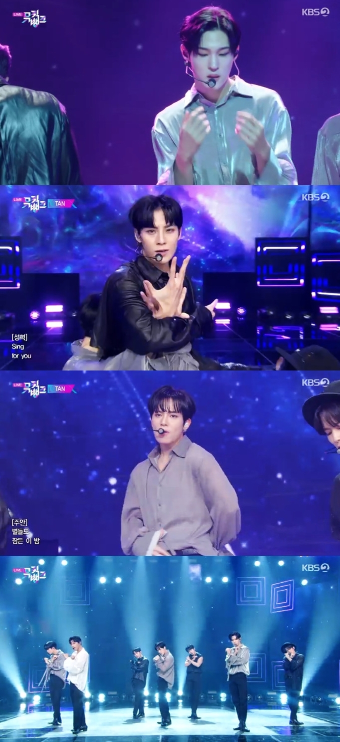 TAN(창선·주안·재준·성혁·현엽·태훈·지성)은 17일 오후 5시 5분 방송된 KBS2 ‘뮤직뱅크’에 출연, 예술적인 ‘Fix YOU’ 퍼포먼스를 보여줬다.
