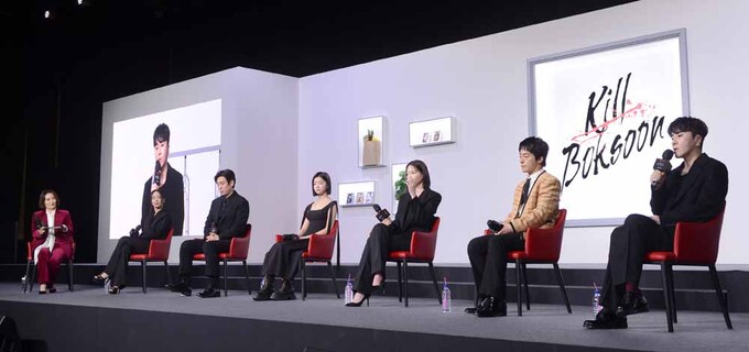 변성현 감독(오른쪽)이 21일 삼성동 그랜드 인터컨티넨탈 파르나스에서 진행된 넷플릭스 영화 '길복순' 제작보고회에서 질문에 답하고 있다.