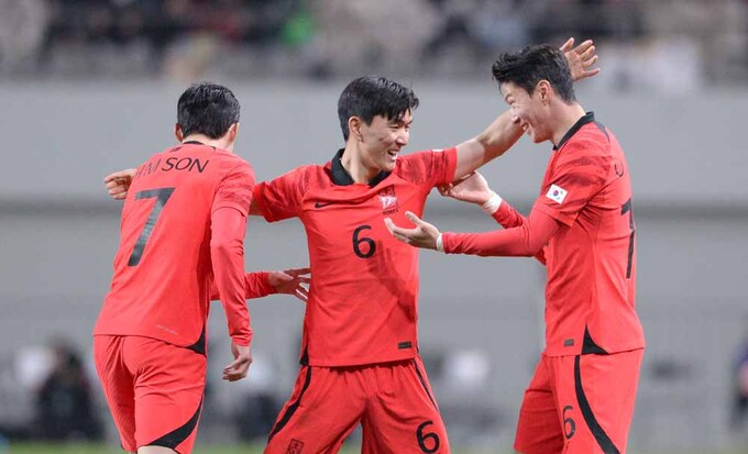[SW포토]손흥민-황의조 축하받는 황인범 기사입력 2023-03-28 21:27:44 기사수정 2023-03-28 21:27:43 글씨 크기 선택 가장 작은 크기 글자 한 단계 작은 크기 글자 기본 크기 글자 한 단계 큰 크기 글자 가장 큰 크기 글자 한국축구대표팀 황인범(가운데)이 28일 서울월드컵경기장에서 열린 우루과이와의 평가전에서 동점골을 넣고 손흥민, 황의조의 축하를 받고 있다. 서울월드컵=김두홍 기자 kimdh@sportsworldi.com [ⓒ 세계비즈앤스포츠월드 & sportsworldi.com, 무단전재 및 재배포 금지] 메뉴보기 페이스북 공유 트위터 공유 url 공유 더보기
