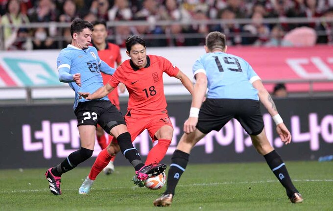 [SW포토]이강인,'다 비켜!' 기사입력 2023-03-28 21:34:37 기사수정 2023-03-28 21:34:37 글씨 크기 선택 가장 작은 크기 글자 한 단계 작은 크기 글자 기본 크기 글자 한 단계 큰 크기 글자 가장 큰 크기 글자 한국축구대표팀 이강인(가운데)이 28일 서울월드컵경기장에서 열린 우루과이와의 평가전에서 볼을 다투고 있다. 서울월드컵=김두홍 기자 kimdh@sportsworldi.com [ⓒ 세계비즈앤스포츠월드 & sportsworldi.com, 무단전재 및 재배포 금지] 메뉴보기 페이스북 공유 트위터 공유 url 공유 더보기