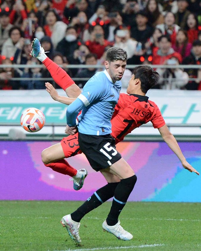 [SW포토]손준호의 시저스킥 기사입력 2023-03-28 21:48:08 기사수정 2023-03-28 21:48:08 글씨 크기 선택 가장 작은 크기 글자 한 단계 작은 크기 글자 기본 크기 글자 한 단계 큰 크기 글자 가장 큰 크기 글자 한국축구대표팀 손준호(오른쪽)가 28일 서울월드컵경기장에서 열린 우루과이와의 평가전에서 시저스킥을 하고 있다. 서울월드컵=김두홍 기자 kimdh@sportsworldi.com [ⓒ 세계비즈앤스포츠월드 & sportsworldi.com, 무단전재 및 재배포 금지] 메뉴보기 페이스북 공유 트위터 공유 url 공유 더보기