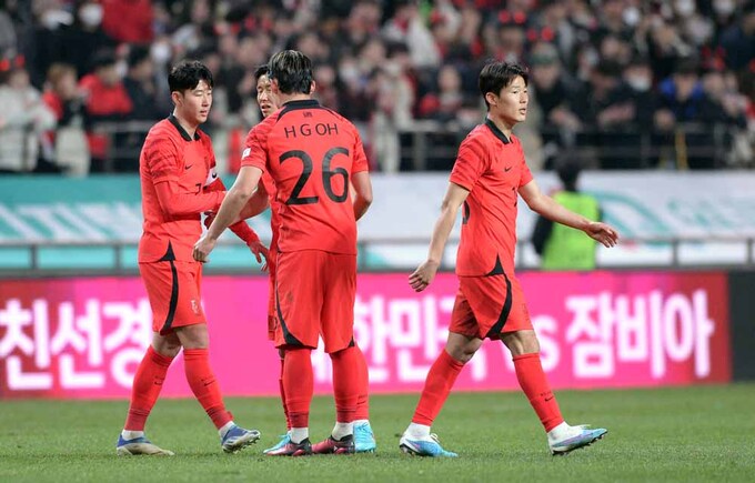 [SW포토]한국축구대표팀,'우루과이에 1 대 2 패' 기사입력 2023-03-28 22:13:48 기사수정 2023-03-28 22:13:48 글씨 크기 선택 가장 작은 크기 글자 한 단계 작은 크기 글자 기본 크기 글자 한 단계 큰 크기 글자 가장 큰 크기 글자 한국축구대표팀 선수들이 28일 서울월드컵경기장에서 열린 우루과이와의 평가전에서 패한 뒤 서로 격려하고 있다. 서울월드컵=김두홍 기자 kimdh@sportsworldi.com [ⓒ 세계비즈앤스포츠월드 & sportsworldi.com, 무단전재 및 재배포 금지] 메뉴보기 페이스북 공유 트위터 공유 url 공유 더보기