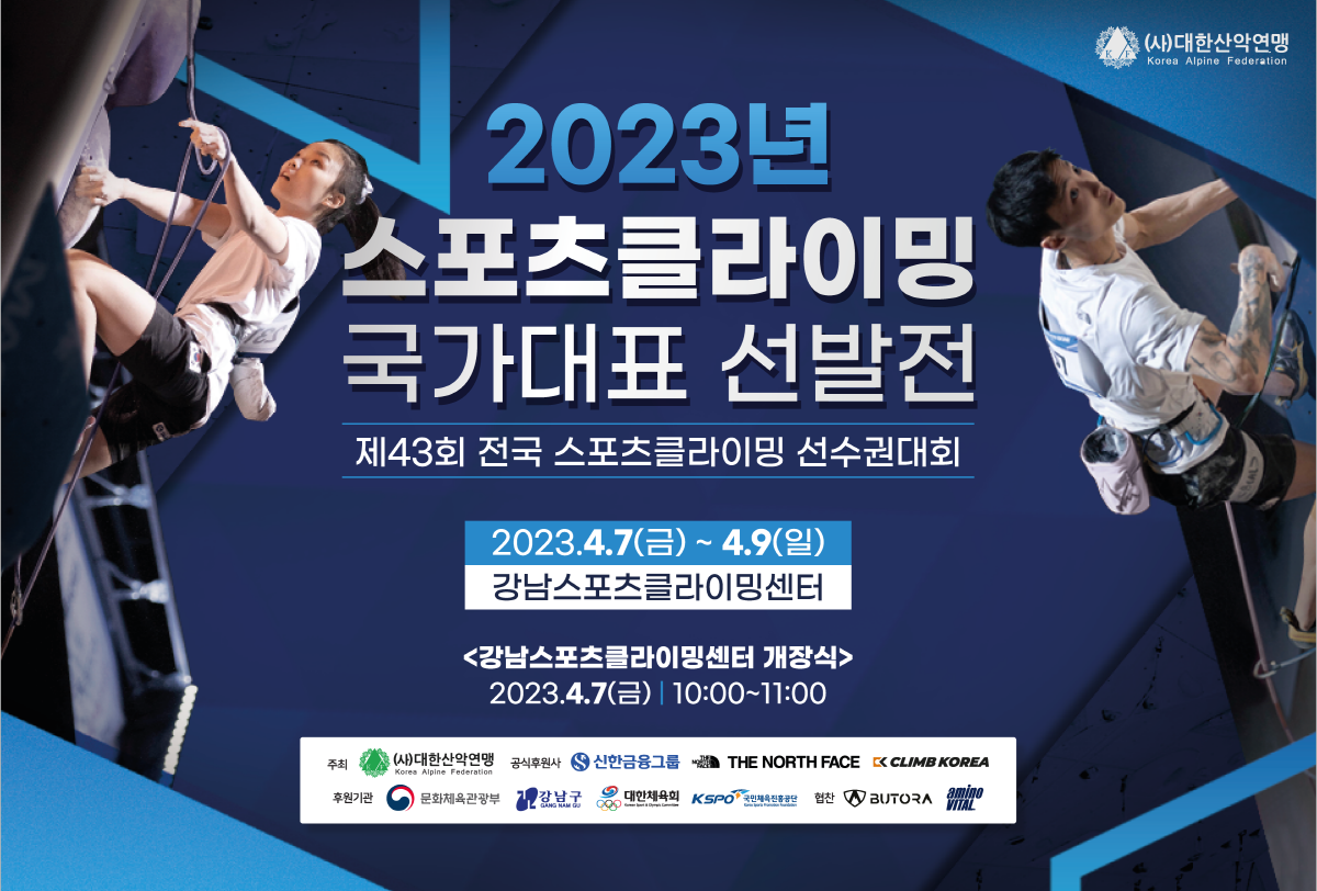 2023 스포츠클라이밍 국가대표 선발전을 겸해 열리는 이번 대회는 신한금융그룹, 노스페이스, 클라임코리아가 공식 후원하며 부토라가 협찬, 강남구, 문화체육관광부, 대한체육회, 국민체육진흥공단이 후원기관으로 참여한다.
