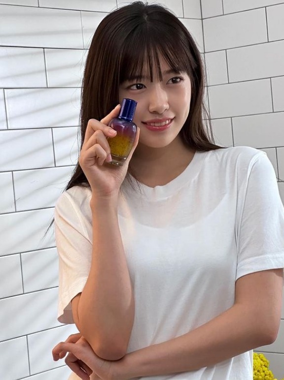 공개된 사진 속에서 광고 촬영을 진행 중인 안유진은 양손으로 꽃받침 자세를 한 채 포즈를 취하고 있다.