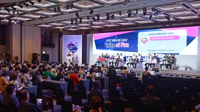 [SW포토]2023 프로야구 개막 미디어데이 기사입력 2023-03-30 15:34:23 기사수정 2023-03-30 15:34:23 글씨 크기 선택 가장 작은 크기 글자 한 단계 작은 크기 글자 기본 크기 글자 한 단계 큰 크기 글자 가장 큰 크기 글자 30일 그랜드하얏트서울 그랜드볼룸에서 '2023 신한은행 쏠 프로야구 미디어데이' 가 열리고 있다. 사진=김두홍 기자 kimdh@sportsworldi.com [ⓒ 세계비즈앤스포츠월드 & sportsworldi.com, 무단전재 및 재배포 금지] 메뉴보기 페이스북 공유 트위터 공유 url 공유 더보기