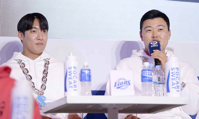 삼성 주장 오재일과 대표선수 원태인은 30일 그랜드하얏트서울에서 열린 2023 신한은행 SOL KBO 미디어데이에 참석했다.