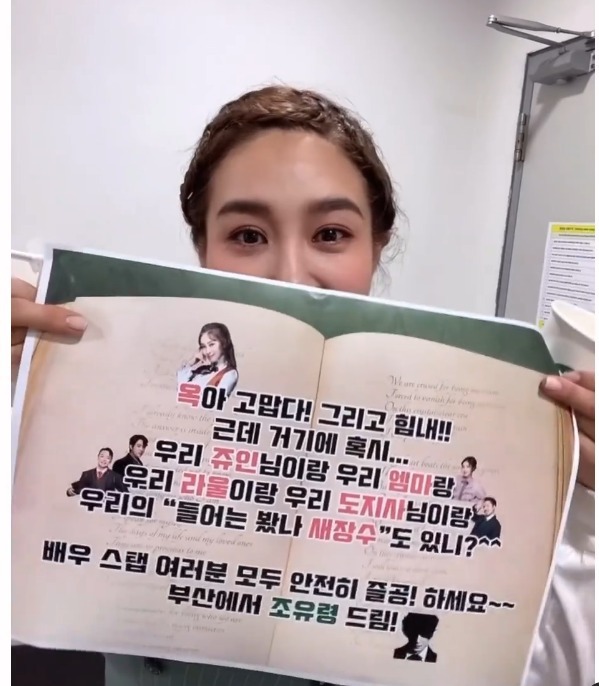 조승우는 “옥아 고맙다! 그리고 힘내!! 근데 거기에 혹시…우리 쥬인님이랑 우리 엠마랑 우리 라울이랑 우리 도지사님이랑 우리의 ‘들어는 봤나 새장수’도 있니? 배우 스태프 여러분 모두 안전히 즐공!하세요~~ 부산에서 조유령 드림!”이라며 옥주현과 배우들에게 애정이 담긴 응원 메시지를 보냈다.