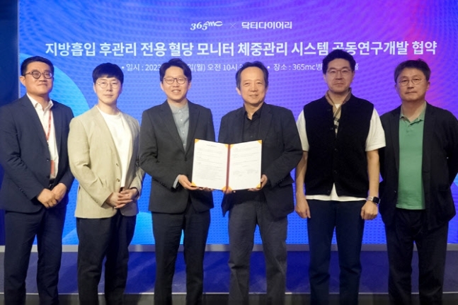지방흡입 및 비만클리닉 특화 의료기관 365mc가 디지털 헬스케어 전문기업 닥터다이어리와 ‘지방흡입 후관리 전용 혈당 모니터 체중관리 시스템 공동 연구개발’을 위한 업무협약(MOU)을 체결했다.