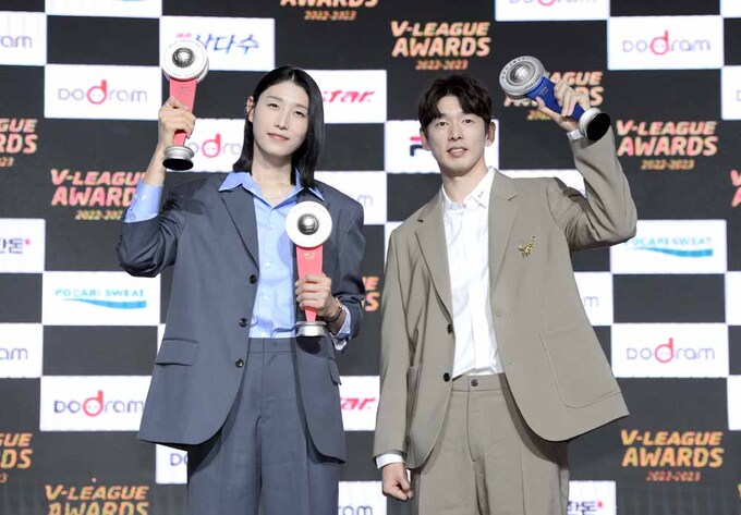 [SW포토]MVP 차지한 김연경과 한선수 기사입력 2023-04-10 17:47:24 기사수정 2023-04-10 17:47:24 글씨 크기 선택 가장 작은 크기 글자 한 단계 작은 크기 글자 기본 크기 글자 한 단계 큰 크기 글자 가장 큰 크기 글자 여자프로배구 흥국생명 김연경(왼쪽)과 대한항공 한선수가 10일 그랜드하얏트서울 그랜드볼롬에서 열린 '도드람 2022-2023 V-리그 시상식'에서 정규리그 MVP 수상 후 기념촬영을 하고 있다. 사진=김두홍 기자 kimdh@sportsworldi.com [ⓒ 세계비즈앤스포츠월드 & sportsworldi.com, 무단전재 및 재배포 금지] 메뉴보기 페이스북 공유 트위터 공유 url 공유 더보기
