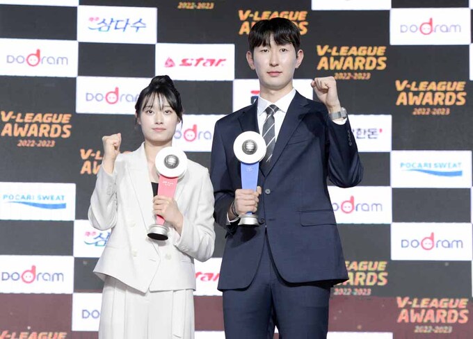 [SW포토]신인상 수상한 최효서와 김준우 기사입력 2023-04-10 17:51:39 기사수정 2023-04-10 17:51:39 글씨 크기 선택 가장 작은 크기 글자 한 단계 작은 크기 글자 기본 크기 글자 한 단계 큰 크기 글자 가장 큰 크기 글자 여자프로배구 인삼공사 최효서(왼쪽)와 삼성화재 김준우가 10일 그랜드하얏트서울 그랜드볼롬에서 열린 '도드람 2022-2023 V-리그 시상식'을 마치고 기념촬영을 하고 있다. 사진=김두홍 기자 kimdh@sportsworldi.com [ⓒ 세계비즈앤스포츠월드 & sportsworldi.com, 무단전재 및 재배포 금지] 메뉴보기 페이스북 공유 트위터 공유 url 공유 더보기