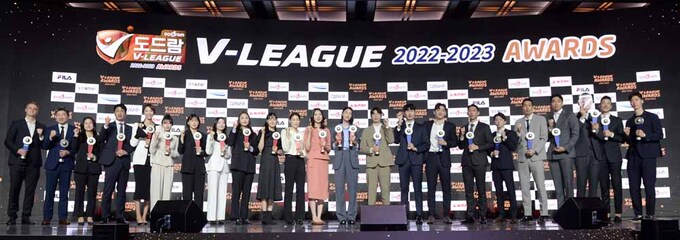 [SW포토]영광의 수상자들 기사입력 2023-04-10 17:57:21 기사수정 2023-04-10 17:57:21 글씨 크기 선택 가장 작은 크기 글자 한 단계 작은 크기 글자 기본 크기 글자 한 단계 큰 크기 글자 가장 큰 크기 글자 10일 그랜드하얏트서울 그랜드볼롬에서 열린 '도드람 2022-2023 V-리그 시상식'을 마치고 수상자들이 기념촬영을 하고 있다. 사진=김두홍 기자 kimdh@sportsworldi.com [ⓒ 세계비즈앤스포츠월드 & sportsworldi.com, 무단전재 및 재배포 금지] 메뉴보기 페이스북 공유 트위터 공유 url 공유 더보기