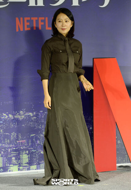 배우 김희애가 11일 서울 용산 아이파크몰 CGV에서 진행된 넷플릭스 시리즈 '퀸메이커' 제작발표회에 참석 포즈를 취하고 있다.